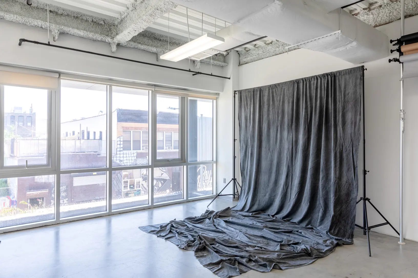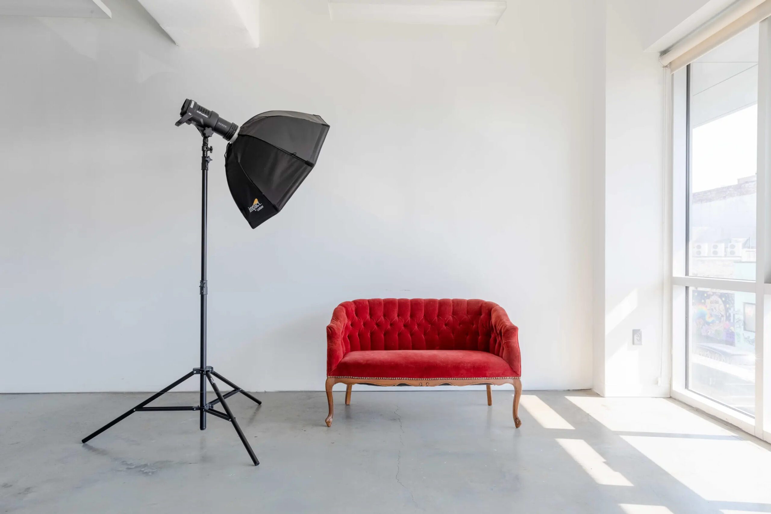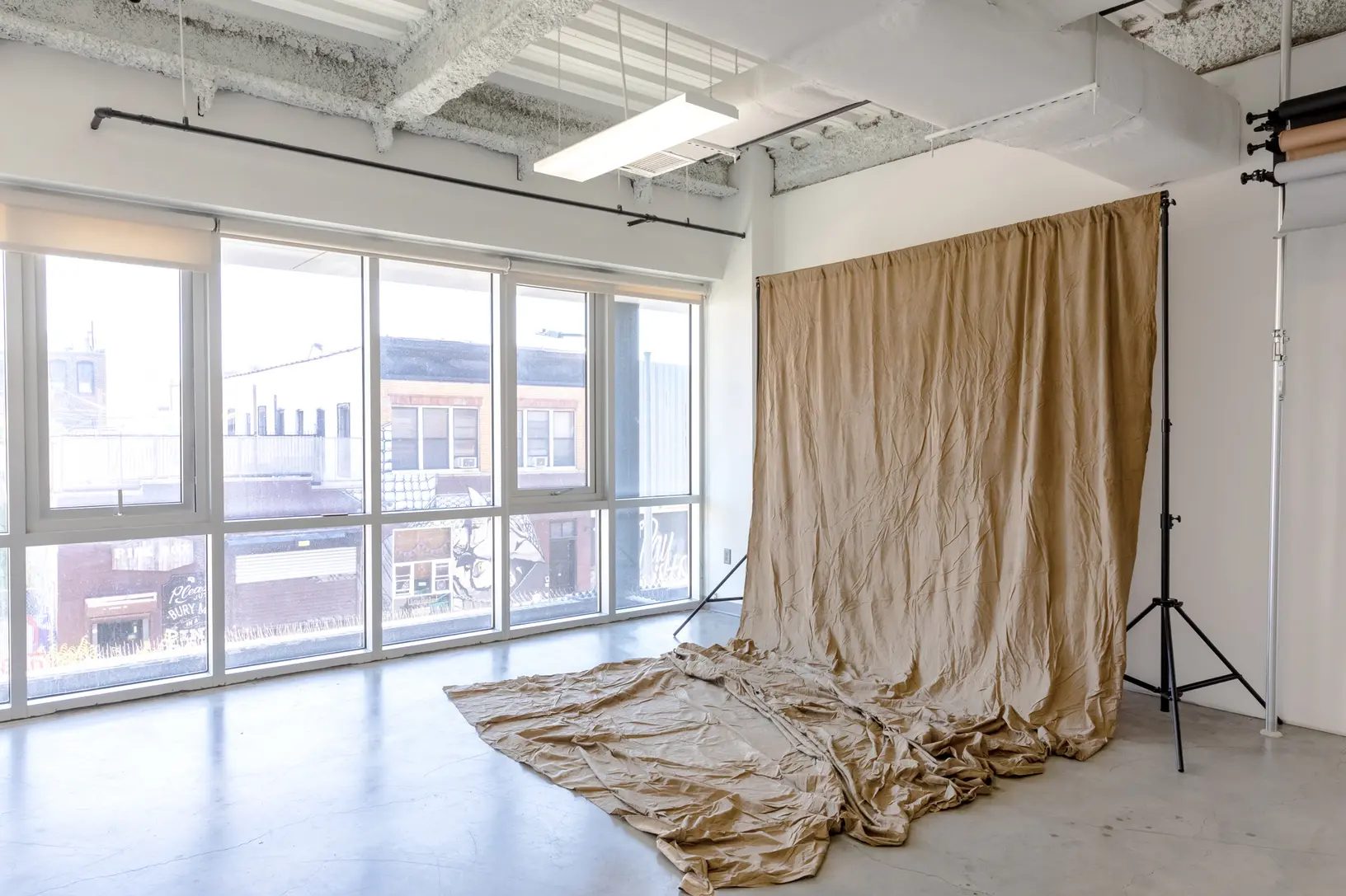 Our photography rental studio has south-facing 10ft tall windows that give daylight access throughout the day. Grattan Studio is located on the second floor of a building and provides nice diffused daylight during summer months (with direct sunlight early in the morning and during golden hour) and direct sunlight entering the space directly during spring, fall and winter months. Our photography rental space also provides blinds that can be used to block the daylight if necessary.